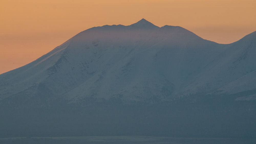 夕陽の赤味がどんどんと後景に移っていって、少し「明るさ」がなくなり、残雪の山々からもなくなる頃から、空がうっすらと「赤らみ」かけてくるのです。