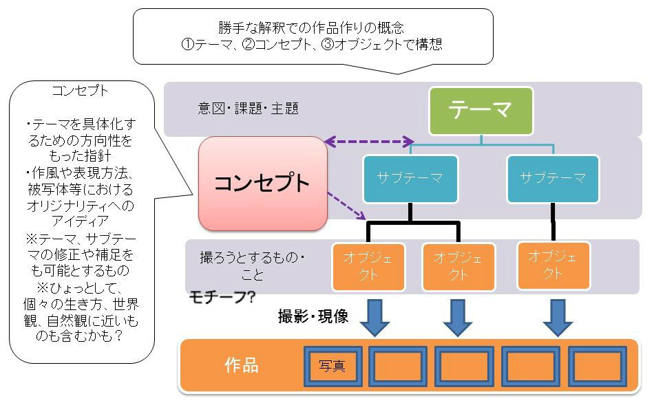 このようなテーマやコンセプトをもつことによって、今までの自然や世界に異なった見方(自然観、世界観)を与えたり、新たな意味をもたせることによって、写真を作品として生み出しているということになります。